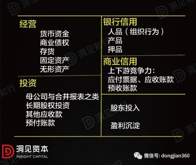 首先,最重要的是货币、应收账款/票据、存货,以及短期借款和应付账款/票据,因为这些体现了一家公司的活力。活力就是说这家公司在没有其他任何东西的时候,通过应收账款存货是可以生存下来的。公司可以把存货给卖掉,就有收入,把应收账款收回来就有收入,有货币也能够回来。从负债的方面来讲,就看这家公司有多好的一个短期借款的能力,以及有多好的一个对上游供应商的欠款的能力,就是应付账款和应付票据。