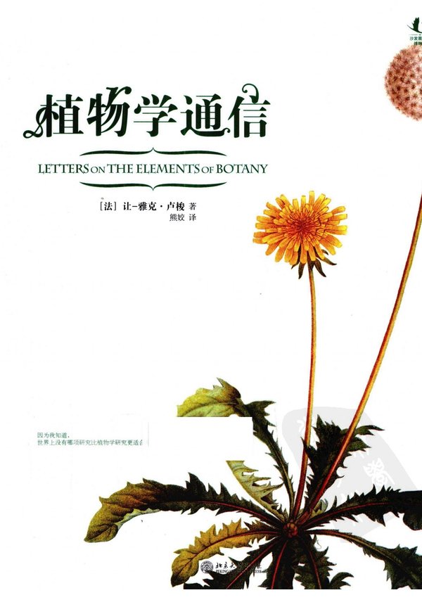 在《忏悔录》(Confessions)中,卢梭声称他本来有可能成为一名伟大的植物学家:“因为我知道,世界上没有哪项研究比植物学研究更适合我天然的品味。”这部写于卢梭晚年的作品不是这位思想巨人的学术著作,而是一部通俗的植物学小品,原书名义上写给一个5岁小女孩的。文笔优美,对植物的讲解清晰有趣。 这也是历史上最伟大的哲学家撰写的最伟大的博物学经典。