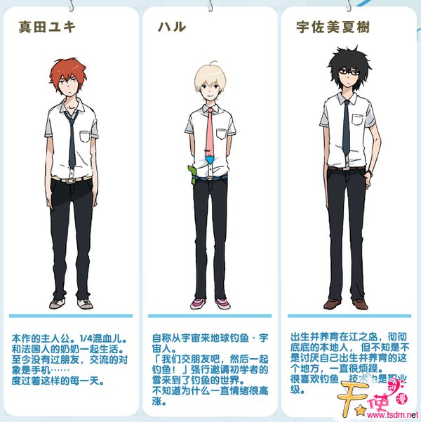 【钓球STAFF】 监督:中村健治 系列构成:大野敏哉 角色设定:宇木敦哉 动画人设:高桥裕一 音乐:栗Corder Quartet 动画制作:A-1 Pictures 制作:tsuritama partners 【钓球CAST】 真田雪:逢坂良太 春:入野自由 宇佐美夏树:内山昂辉 明·安格鲁卡鲁·山田:杉田智和 可可:加藤英美里 海咲:富永美衣奈 樱:小仓唯 绘里香:山本希望 凯特:平野文