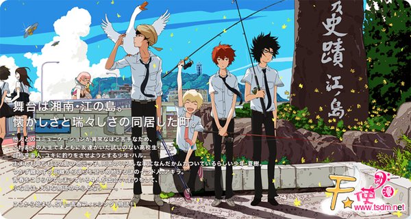 【钓球内容介绍】 故事的舞台是湘南的江之岛,是一片祥和又略显陈旧的小镇。 因为对和别人交流很苦手,一直没有交到过朋友的高中生[雪] 自称宇宙人,让雪开始钓鱼的少年[春] 在江之岛出生长大的本地孩子,似乎对周遭的很多事情很恼火的少年[夏树] 一直在若即若离的距离观察者少年们的迷之印度人[明] 4位有着不平凡青春的年青人相遇了。他们看似平凡的钓鱼活动,蕴藏了一个庞大的事...... 【钓球人物介绍】