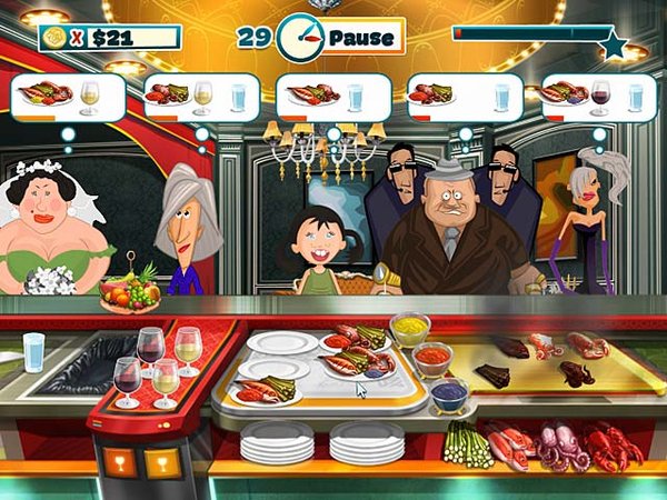 游戏的玩法简洁快速,挑战的是你的经营和控制能力,如何把简单的工作安排的最富效率将成为你的首要问题,随着游戏的深入也会出现各种各样有趣的顾客,经营快餐厅的乐趣尽在游戏之中。
