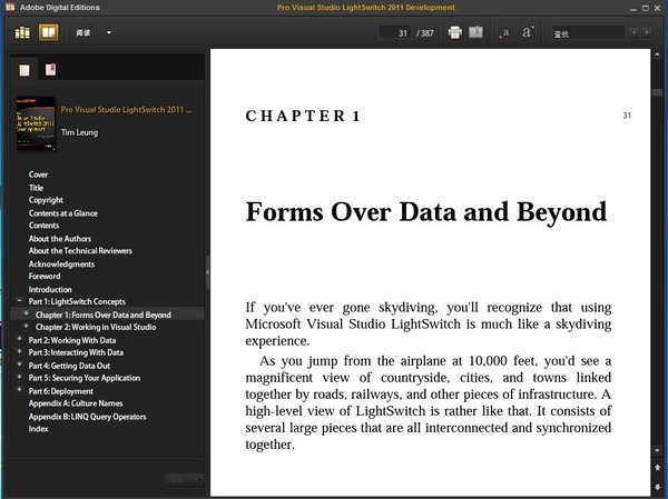 : 1 Forms Over Data, and Beyond 2 Working With Visual Studio 3 Designing Data 4 Accessing Data 5 Validating Data 6 Querying Data 7 Creating and Using RIA Services 8 Creating and Using Screens 9 Creating and Using Custom Controls 10 Creating and Using Extensions 11 Creating and Displaying Reports 12 Creating and Sending Emails 13 Authenticating Your Users 14 Authorizing Your Users 15 Auditing What Your Users Do 16 Deploying Your Application 17 When Things Don't Go Quite Right