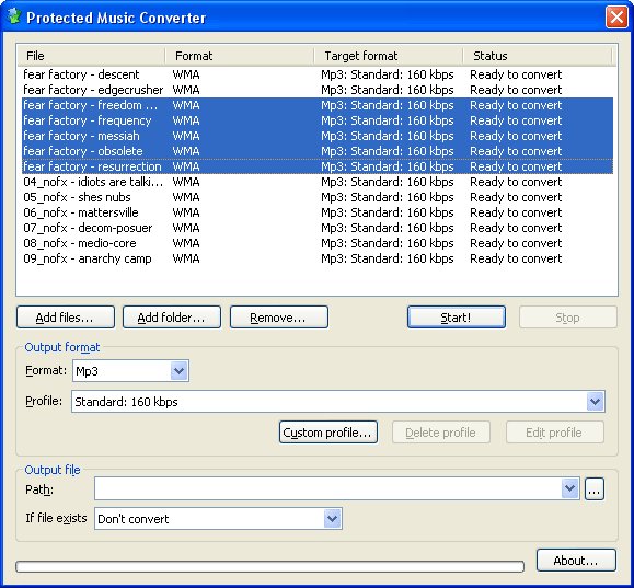 If you need to convert more than one WMA to MP3 then Protected Music Converter will be ideal for you, as the program supports batch conversion to MP3. It means, that you may add as many WMA files as you need. And have a rest while it is converting to MP3.