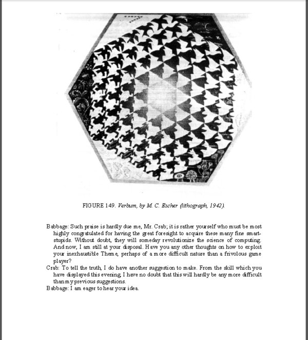 此书在深层次上并非研究这三个人。那只不过是其中一条路通往该书中心主题——侯世达在序言指出:“到底文字和思想是否依从俱形式的规则?这正是此书的中心问题。”(Do words and thoughts follow formal rules, or do they not? That problem is the problem of this book.)