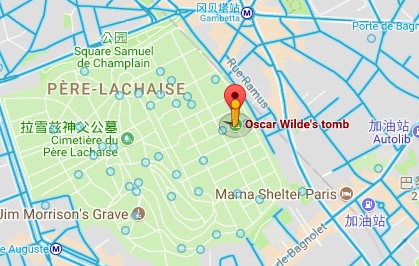 2. Google Map 上输入“tomb de Oscar Wilde”就能直达王尔德坟前。