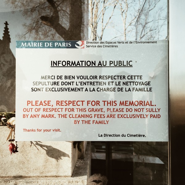 公告:请尊重这座墓碑,不要在上边留下任何印记,墓碑清洗费用都是由家属承担的。(言外之意清洗费用真的很贵!)