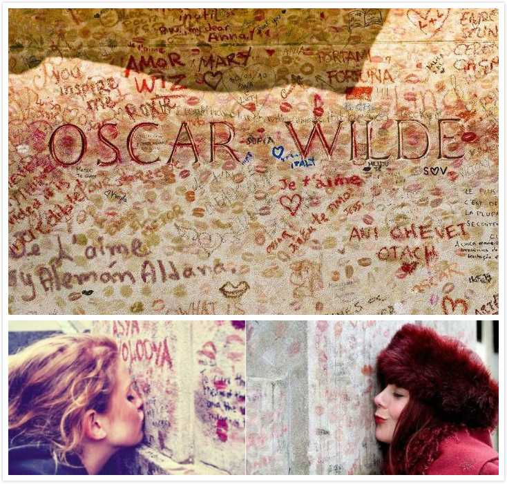 王尔德坟墓是按照他的诗集《斯芬克斯》中的意象塑造出来的一座小小的狮身人面像。不知何时开始,人们(特别是吕孩子)开始用亲吻表达自己到此一游,留下唇印留作证据。