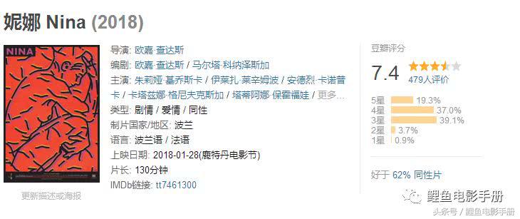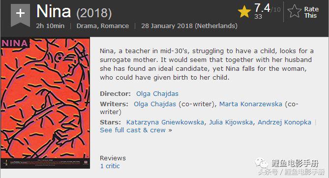 妮娜这部是波兰女导演欧嘉·查达斯的导演处女作,成本应该很低廉,画面有很强的像素颗粒感。即使如此丝毫不影响导演构图天分的展现,导演很有才华,非常美的一部电影,鲤鱼给7分。