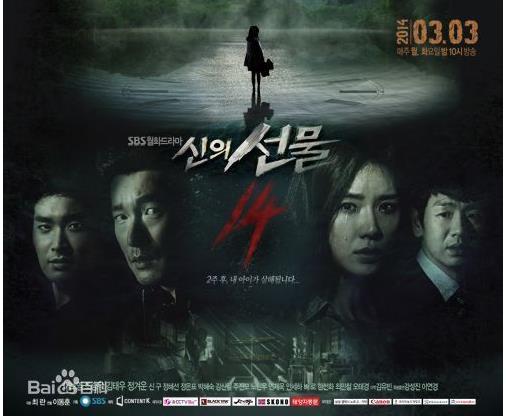 《神的礼物~14天》,由李宝英、曹承佑等人主演,讲述了女主角的女儿被绑架杀害后,女主角回到过去寻找凶手的故事。李宝英饰演时事节目作家,与老公生有一女的幸福女人金秀铉。但在某一天,金秀铉发现了女儿的尸体,并神奇般回到过去寻找凶手。为挽救女儿的性命,她将利用2周的时间,和男主角一起为救女儿而奋战,展现了母爱。