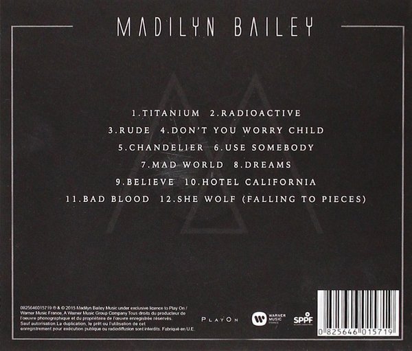 专辑都是把这些名曲以民谣和成人抒情的方式重新演绎,我个人认为这张专辑Madilyn Bailey翻唱的很多作品比原唱好好的多,毕竟Madilyn Bailey的条件太好,那嗓音简直犹如天籁,嘹亮纯净,听Madilyn Bailey的演唱真是一种享受;这张作品也为Madilyn Bailey的首张个人创作专辑铺成了极好的开头;最近最优秀的翻唱作品,Madilyn Bailey的歌迷不可错过。