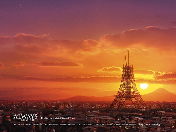 战争结束十多年,昭和30年的东京为背景,市井生活的远处是正在兴建的东京铁塔,一切百废待兴。开家庭汽车修理行的铃木一家三口,二流小说家,漂亮的酒馆女老板,在车行打工的小城女孩,被母亲遗弃喜欢阅读的孩子等等这些形形色色的人构成了一幅中下层社会的浮世绘。众多经典的元素都汇聚在影片中,无论是东京塔还是作为回忆的城市老街,从冰箱、电视机的出现,到芥川奖与石原慎太郎和大江健三郎的文学名声。