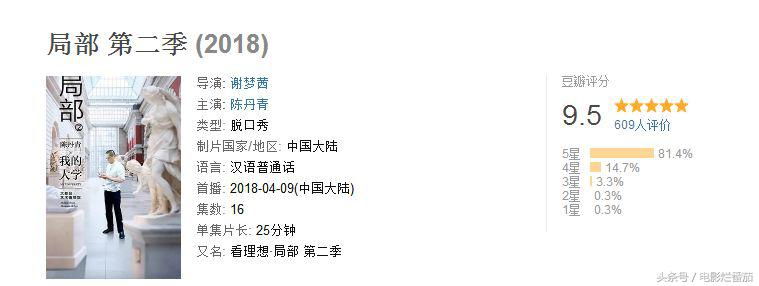 《局部》是绘画鉴赏入门级水平的脱口秀节目,新一季在优酷刚刚放出两集,豆瓣评分就狂奔到9.5分,比BBC最新推出的《文明》还要高。
