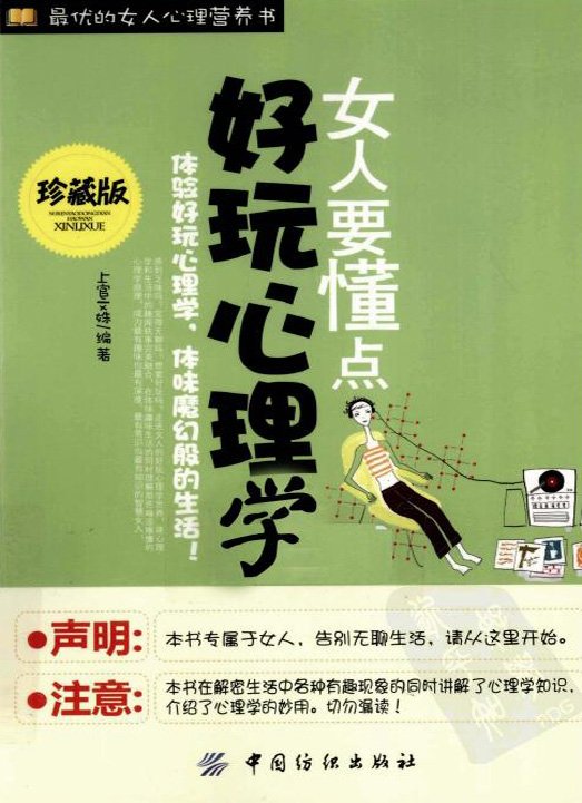 生活要有趣味,人生才会快乐,在心理学的世界中,女人收获的不仅是心理学知识、技巧,还有生活的趣味,在玩中走进心理学,把握自我心理,学会用心理学技巧改变生活,这才是女人学习心理学的至高境界,本书精选了与女性生活息息相关的诸多问题进行讲解,把女人带到一个趣味盎然的心理学世界,一见钟情的秘密、恋爱达人的秘诀等,这些新颖有趣的心理学案例都能让女人体味到趣味性,带给女人一种其他心理学读物没有的新鲜感。