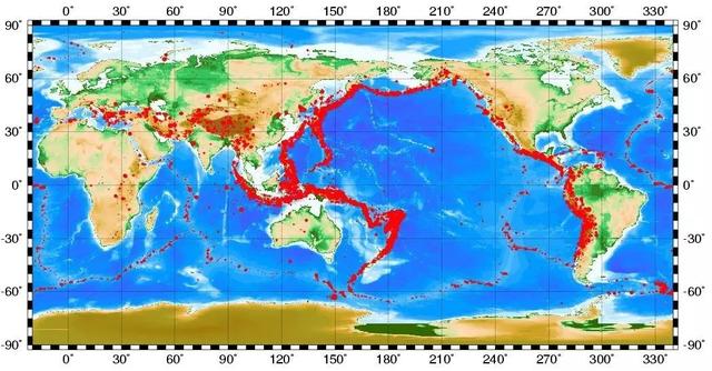 世界主要地震带分布图:环太平洋地震带和欧亚地震带。图源:amuseum.cdstm.cn