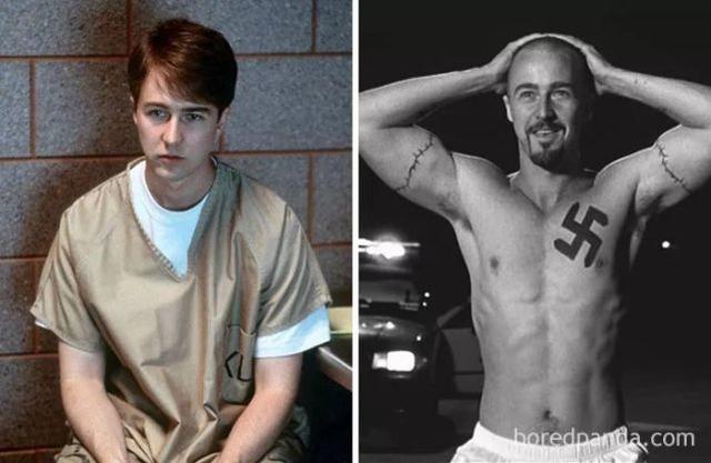 美国演员爱德华·诺顿为了出演犯罪剧情片《美国X档案》,生生的把自己的体重增加了30磅,把自己训练成了性格扭曲,崇拜纳粹党的混混。
