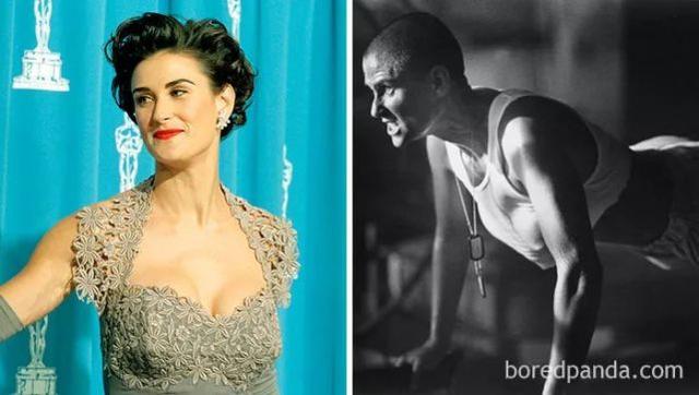 黛米·摩尔一直以来都是以一种优雅美的姿态出现,1997年,她为了在影片《魔鬼女大兵》中出演角色,剪掉了长发,扮演了海军陆战队有史以来第一个女队员。