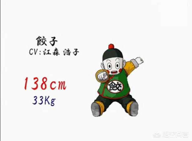 第一、饺子 (138cm)第一次见是个可爱的小孩子(还记得它和克林比头发的情节嘛),龙珠系列都好几部完结了,饺子的每次出场还是一如往常的可爱模样,跟在天津饭的身边,保持自己第一次见面的样子