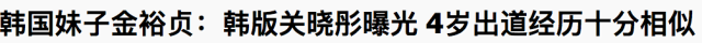 如果说,金赛纶9岁才开始出演电影,和4岁就参演了自己首部影视剧作品的关晓彤还有点差距的话,金裕贞在这一点上,可就完全不输了。