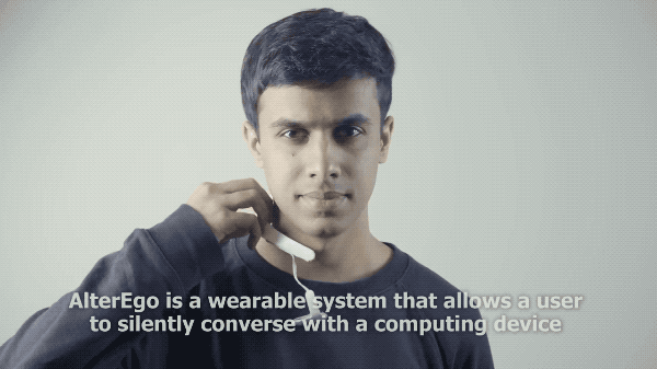 解释一下原理: 人的大脑其实比嘴巴快得多,在你张嘴说话前,神经信号就已经出现,并会到达下颌部位。这时,Alter Ego就可以捕捉到信号,“理解”你说的话,作出反应。