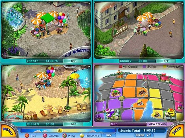 整体游戏画面具有色彩缤纷,细腻生动的刻画效果,精美的图形另人赏心悦目。玩家可在街区,广场,公园,医院,海滩等区域可同时开设3个花坊,表现手法独特,一分为四的界面使销售过程,客人的满意程度更为清晰明了。