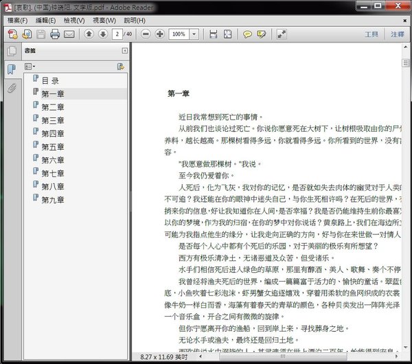 《哀歌》中多情善感的女孩,只身一人到国外留学,在荒漠的国度,让她遇见一个热爱海洋的男子。作者在小说里,试图揭露人心情感本来多謇,一切形而外的劳心疲累,是否都要等到死亡,魂魄才得以自由,心灵方可超越,飞翔到真正的爱情国度。