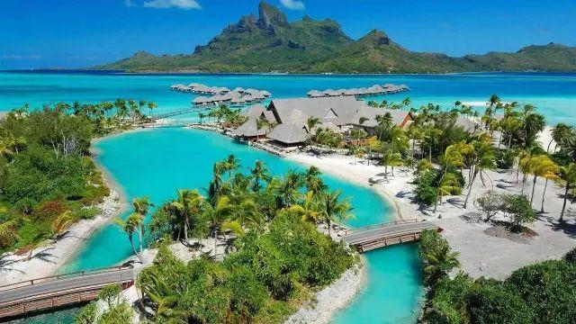 波拉波拉美得令人窒息。湛蓝的海洋,敛滟的珊瑚,耀眼的白色沙滩,翠绿的岸边椰林,天然怡静的水上茅屋,紫气氤氲的秀丽山峦,构成了一幅梦幻般的美妙画卷。
