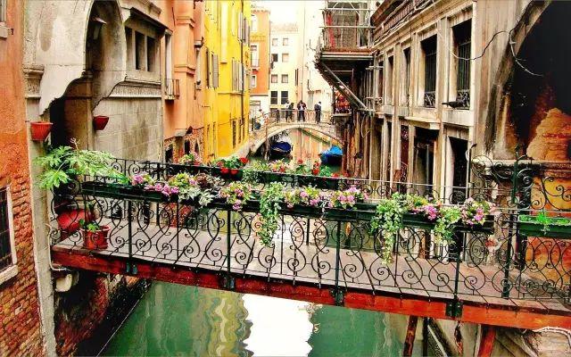 运河的小桥两端上都一脉相承的有鲜花装点,在运河的任何一个位置定格快门,都是一幅无与伦比的清新画面。