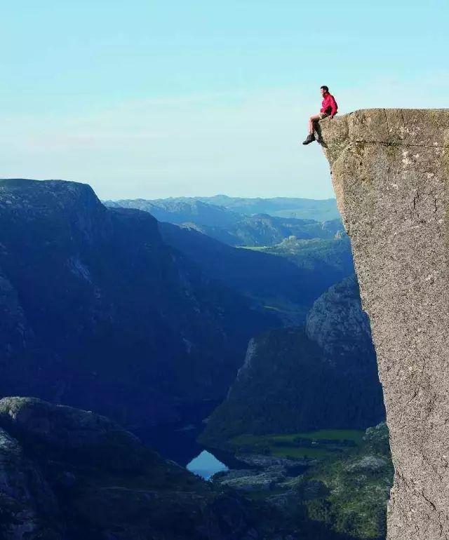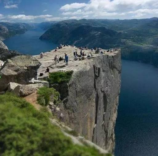 一个和峡湾水面垂直落差604米的平台,周遭的景色豪迈壮阔,沿路的都是峡湾风景最美的地方,旁边就是断崖。