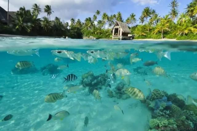 波拉波拉岛清澈多彩、色彩如梦幻的蓝色潟湖,是世界级的知名潜点,充满了色彩斑斓的活珊瑚与无数环游其间的热带鱼。