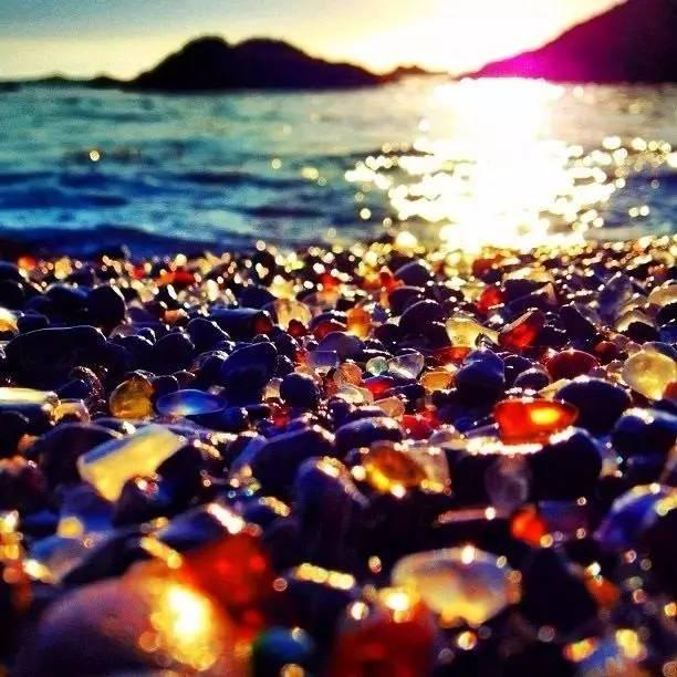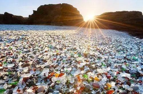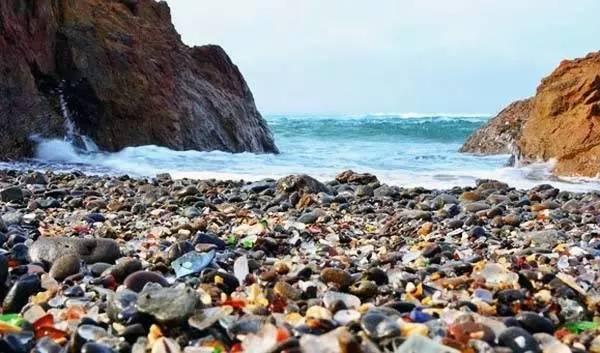 遗留在海滩上数吨的玻璃经过太平洋多年的冲刷,形成了今天我们看到的独特风景。