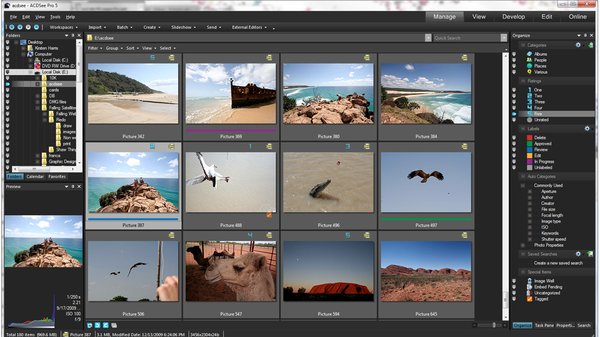 ACDSee Pro 很容易查找指定文件, 或文件组。 基于你的个人主题, 使用组织面板创建一个分类树状视图 (不是真的移动你的文件)。对你的相片分等级, 使你可以单击鼠标就能找到你最好的相片。要分配你的相片, 从文件列表拖动你的文件, 将它们放入一个种类或等级中。
