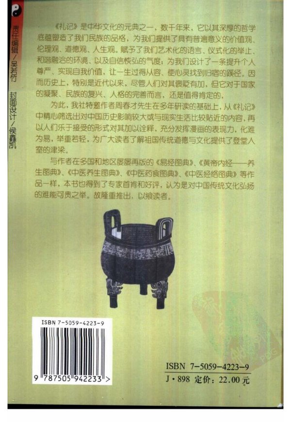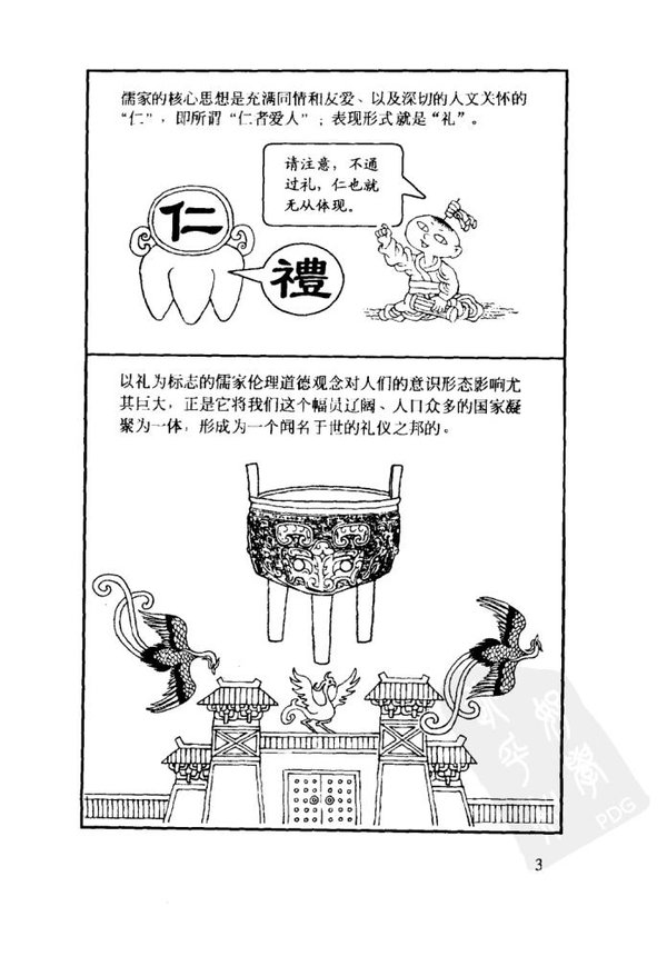 《礼记》是中华文化的元典之一,数干年来,它以其深厚的哲学底蕴塑造了我们民族的品格,为我们提供了具有普遍意义的价值观、伦理观、道德观、人生观。赋予了我们艺术化的语言、仪式化的举止、和谐融洽的环境、以及自信恢弘的气度;为我们设计了一条提升个人尊严、实现自我价值,让一生过得从容、使心灵找到归宿的蹊径。因而历史上,特别是近代以来,尽管人们对其褒贬有加,但它对于国家的凝聚、民族的复兴、人格的完善而言,还是值得肯定的,为此,我社特邀作者周春才先生在多年研读的基础上,从《礼记》中精心筛选出对中国历史影响较大或与现实生活比较贴近的内容,再以人们乐于接受的形式对其加以诠释,充分发挥漫画的表现力,化难为易,举重若轻,为广大读者了解祖国传统道德与文化提供了登堂入室的津梁。