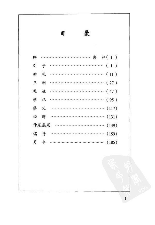 : 序 引子 一 曲礼 二 王制 三 礼运 四 学记 五 祭义 六 经解 七 仲尼燕居 八 儒行 九 月令