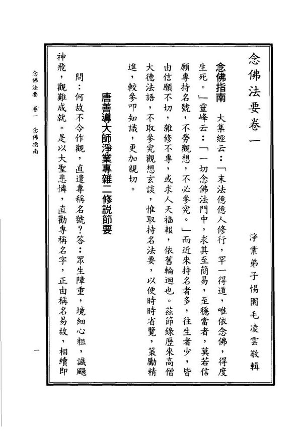 故千经并阐,万论均宣,若从解入,非深入经藏,广研祖教,决难寻究。吾幸得早退隐,涉猎经藏,广搜净籍,编印净土丛书,以广弘扬,而期普利,际兹工业社会,人多忙碌,无暇研阅,曾将节录经论及净土文等、有关持名念佛之法要,增删五版,广结净缘,期皆先从行入,实甚简易,共获离苦得乐之大利也。郑南熏居士,为自利利人,嘱再增删,连印数版。兹又承嘱将近年在台往生之高僧大德,节录其法语事略,分别增删,以广示范而起信,期皆见贤而思齐,并改排大字,标点断句,以便阅读,集资广印,分赠中外,辗转流通。凡见闻者,皆发深信切愿,专勤念佛,诸恶莫作,众善奉行。现即蒙佛加被,消灾延寿,共免核子毁灭之大劫;寿终往生,永离生死轮回之极苦,见佛闻法,忍证无生。然后不违安养,回入娑婆,广度众生,共成大觉之佛,化此苦海,皆为极乐之邦。此皆郑居士屡嘱增删,续印广赠之福德无量也。