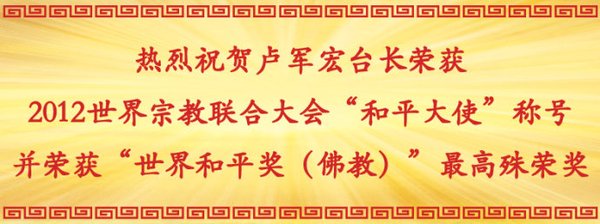 卢军宏,1959年生,澳洲东方华语电台台长,新洲华人团体协会106个社团联合团体的副主席,澳洲中国和平统一促进会的副会长, 澳中戏曲传媒协会的会长。上世纪80年代,卢军宏移民澳大利亚,从而步入传奇人生。1998年,他开始了悉尼华语电台的主持人生涯。他的普通话标准清晰,主持风格热情洋溢、幽默诙谐,与听众保持良好互动,赢得了众多听众的喜爱和尊重。 2012年7月8日,受到英国伦敦主办的世界宗教联合大会的邀请至伦敦参加此盛会。作为英国女王登基六十周年庆典活动之一、并为英国皇室所特别倡导的“世界宗教联合大会”,有鉴于卢军宏台长十几年来对人类文明的发展,以及为弘扬佛法和中华传统文化所做出的突出贡献,使世界上数以百万计的有缘人认识佛教,脱离苦海,改变命运,本届“世界宗教联合大会”特授予卢军宏台长——本年度“和平大使”称号,并荣获“世界和平奖(佛教)”最高殊荣奖。英国伦敦市长及政府议员亲自为卢台长颁奖。 这是一个非常重要的世界性奖项,“世界和平奖(佛教)”无疑是对卢台长多年来弘扬佛法救度众生的最高首肯!这是继《人民日报》刊登报道“心灵法门”之后,西方主流社会对弘扬中华文化的卢军宏台长所作贡献的肯定;这也是继今年十月份卢台长将应邀赴哈佛大学演讲之行确定后,心灵法门走向世界的又一个里程碑。如今,心灵法门已受到学术界的关注,今天来自世界几十个国家,各种宗教的领袖欢聚一堂共同为和平唱诵,“世界和平奖(佛教)”是此次大会唯一一个大奖,说明“心灵法门”被世界宗教界所认可。对于这一殊荣,全世界心灵法门的同修们无不法喜充满,感恩大慈大悲观世音菩萨!!! 卢军宏台长数十年如一日弘扬中华传统文化,不辞辛劳,舍己渡人;维护世界和平,热爱祖籍国;近两三年来更是奔赴世界各地弘扬佛法普度众生,弘法足迹遍及世界二十多个国家和地区。心灵法门不仅为世界各国主流媒体所广泛报道,更得到世界各国政府的认可和赞誉,在全球各地遍地开花。据不完全统计,现在心灵法门的信众遍及世界各地,不仅有华人更有无数的西人受益于此,信众已经达到五百万人。此次获奖可谓众望所归,实至名归。 “世界和平奖(佛教)”不仅是全世界华人的骄傲,更是宗教界的希望。 希望大家以此为动力,精进学佛做人,学习观世音菩萨无缘大慈、同体大悲,以卢台长为榜样弘法度人,广度有缘众生!