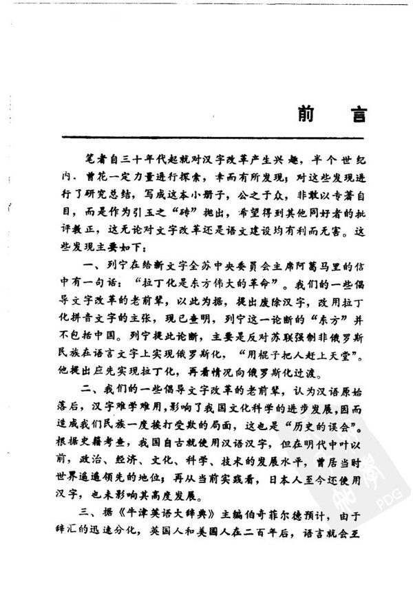 作者对文字和汉字的发展进行了分析,提出了汉字拉丁化的问题,并对简化汉字的改革进行了反思。