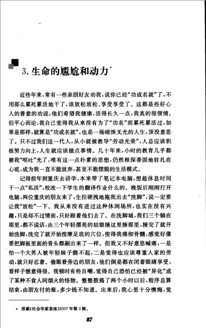 什么是人生?通常认为,人自从一生下地,便开始了他的人生。一般意义上当然也可以这样说。但在我所体会的意义上,真正的人生是从一个人脱离家庭的庇护而走上社会的时候才开始的。当人意识到自己是一个“人”,而不只是家庭的一分子,当人意识到他的处境同其他“人”没有任何两样,他必须靠自己的双手和头脑为自己争得在社会上立足成人的资格,这时候,他的“人生”就开始了。而在此之前,他的家庭生活、学生生活都只不过是在为他踏入人生作准备而已。