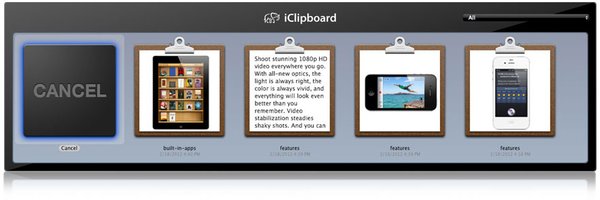 iClipboard makes it easy to quickly paste multiple clippings at once. You can select just a few clippings to be pasted, or you can paste all the clippings in the history or a project.