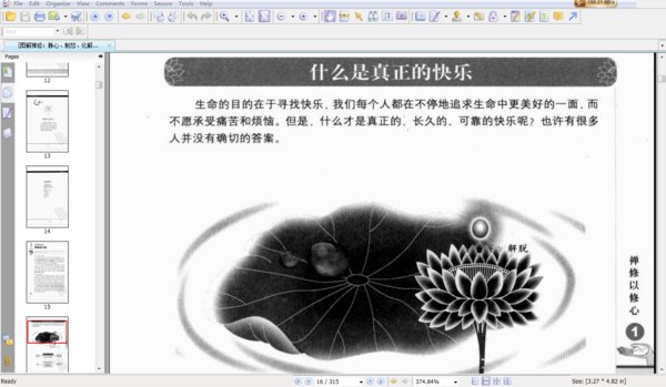 : 禅修方法一览 编者序:养身修心的法宝 本书阅读导航 第1章 禅修以修心 1、寻找快乐的方法:禅修的目的 2、探索快乐之源:认识我们的心 3、禅修是心智训练:发掘内心的智慧 4、禅修不等于打坐:对禅修的几种误解 5、专注式禅修:止禅 6、思考式禅修:观禅 第2章 从头学习禅修 1、明确而不要冒进:禅修要有目标 2、在哪里打坐:地点的选择 3、禅修与时间:禅修的时间安排 4、禅修方法的选择:观呼吸 5、创造心灵空间:修行的动机和态度 6、保持最舒适的身体:禅修的姿势 7、放松并保持警觉:修行时的身心状态 8、正式开始禅修:禅修的过程 9、移除障碍(1):禅修过程中常见的问题 10、移除障碍(2):排除内心的魔障 第3章 观心 1、最常见的禅修方法:观呼吸 2、净化染污之心:心之明性 3、追溯过去和未来:心之连续性 第4章 思考式禅修 1、万物皆空:禅修空性 2、人身难得:珍惜人身的禅修 3、一切皆在变化:观无常的禅修 4、人身难逃之苦:对死亡的禅修 5、前因致后果:对业力的禅修 6、净除恶业之障碍:净化业障 7、众生皆苦:对苦的禅修 8、去除分别心:心平气和的禅修 9、爱及众生:培养慈爱的禅修 10、悲及众生:培养慈悲的禅修 11、平静而正面地对待:处理负面能量 12、寻找内心的快乐:处理执著 13、不再伤害彼此:处理愤怒 14、重新认识自己:处理沮丧 15、一切恐惧皆为虚幻:处理恐惧 第5章 观想禅修 1、禅修的方便途径:观想 2、明亮清净的正面能量:观想光 3、救度众生者:观想度母 4、慈悲的化身:观想观音菩萨 5、汲取心灵能量:观想拙火 第6章 其他修行法 1、不乏理智的信心:培养虔诚的心 2、一切众生皆有佛性:观想佛陀 3、消除病痛的方法:观想药师佛 4、培养利他之心:修心八颂 5、最迅速的殊胜本尊法门:观想二十一度母 6、消除业障的忏悔法:金刚萨忏罪法 7、遵守戒律的修行:大乘八戒 8、菩萨忏悔文:三十五佛忏 附录