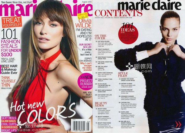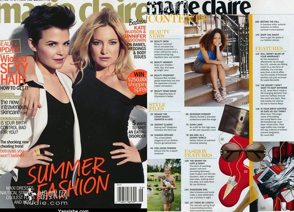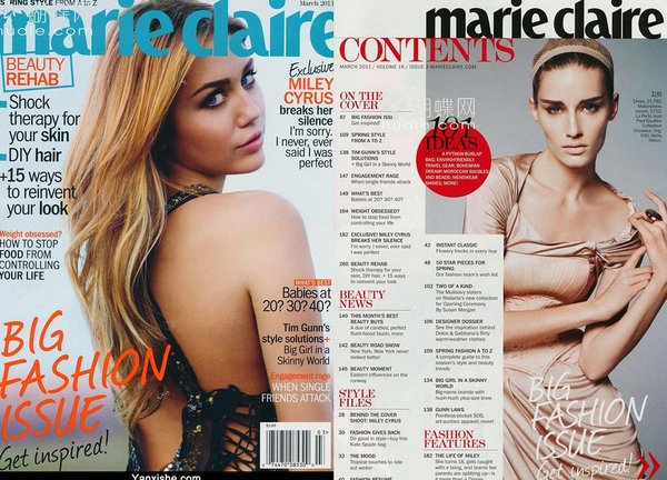 《marie claire》 1937年创刊于法国,全球坐拥24个版本,是世界著名高档女性期刊之一。《marie claire》一向以细腻的女性视角、独特的社会报道,展现多元化的潮流生活。一直以来,《marie claire》就致力于她的理想:以一种浪漫的方式告诉读者这个真实的世界是怎样的;帮助读者达到她梦想中的生活。她将刷新女性杂志一贯形象,不仅展示女人美丽的外表,更搜索女人的灵魂,深入女人的内心。