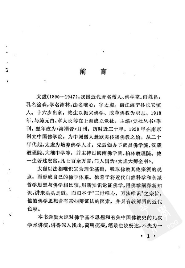 太虚法师是中国近代佛教改革运动中的一位理论家和实践家,近代佛教复兴运动的倡导者,近代佛教领袖。曾任世界佛学苑苑长、中国佛教学会会长、中国佛教整理委员会主任。他针对清末以来佛教界的种种弊病提出“佛教革命”的口号,主张在教理、教制、教产三个方面实行革新,规划创建新型的僧团组织和制度,他主张推行贴近普通民众社会生活的“人生佛教”,并致力发展佛教教育。
