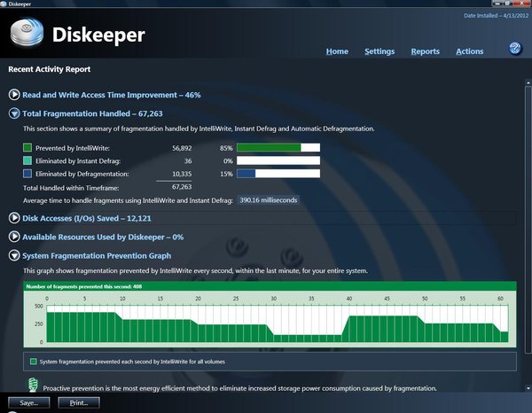 With the new Instant Defrag™ engine, any file fragmentation that wasn’t prevented with IntelliWrite® fragmentation prevention technology will be defragmented within milliseconds of occurring, you will never have to experience performance-robbing fragmented files ever again.