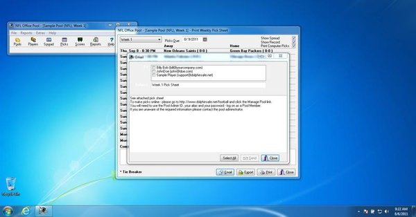NFL Office Pool 职业球赛数据管理器,一个基于Windows的环境和一套自定义的工具,你可以找到最新的成绩和亮点,以及你需要的一切,支持多个联赛(NFL, NCAA, CFL, Arena等等),支持整个NFL季节数据加载(包括5个赛季前周和整个季后赛)。