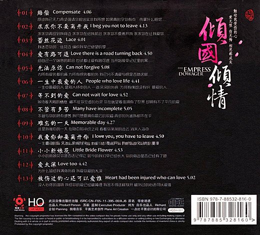: 01. 赔偿 02. 求求你不要离开我 03. 蕾丝花边 04. 爱有路可退 05. 无法原谅 06. 一生中最爱的人 07. 等不到的爱 08. 不管有多苦 09. 难忘的一天 10. 我爱你却要离开你 11. 小小新娘花 12. 爱太深 13. 被伤过的心还可以爱谁