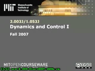 中文名: 麻省理工学院开放课程 机械工程系2.003J 动力学与控制