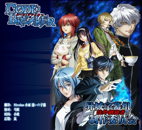 曾经创作过「鬼眼狂刀」的上条明峰从2008年起在讲谈社杂志「周刊少年Magazine」上连载的人气少年漫画「CODE:BREAKER 法外制裁者」,决定将于今年10月推出TV动画。"CODE:BREAKER 法外制裁者"顾名思义,是不受法律的约束、常理的影响,以眼还眼、以牙还牙、以恶制恶的黑暗英雄组织,由六位超能力者组成,并以他们的特殊能力,向逃过了法律制裁的恶人施以惩罚。女主角樱小路樱是个外表柔弱的少女,但真实身份却是黑社会大小姐,身怀绝高武技。某天,她无意撞见身为"CODE:BREAKER"NO.6的大神零以蓝色的火焰将人烧死,而警方却只当作一般的火灾事故处理。随后,大神以转学生的身份来到樱的学校,本想将樱灭口,却发现他的火焰不起作用,原来樱是能把各种超能力无效化的"稀有品种",正义感超强的热血少女樱对任何形式和理由的杀人都不能允许,故事也就由此展开。