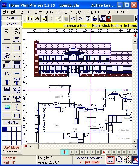 Home Plan Pro provides a full array of graphic tool buttons to let you easily pick a tool or action. Once you choose a tool, Home Plan Pro tells you how to use it. You may use the mouse or keyboard, or both, to create your plan. Home Plan Pro gives you many choices for printing your plans. You may select a specific scale, or elect to have your plan printed at the largest size that will fit on the paper you select.