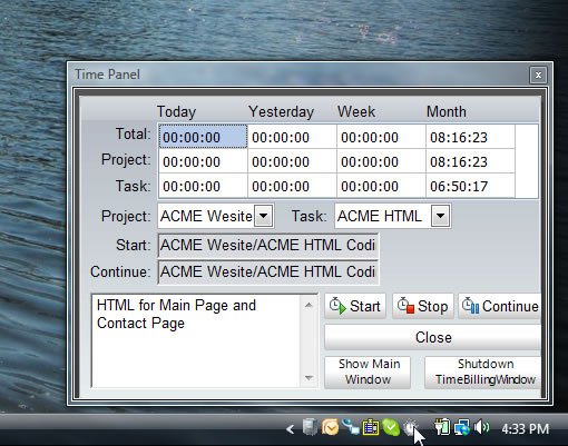 随着时间的计费,你可以看到系统托盘显示你的任务,同时收集快速和容易的计费工作时间,显示哪些任务是打开并同时进行计时,采集时间为快速、 方便的计费工作。