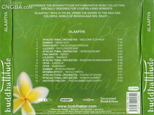 举世驰名的 Buddha Bar 除了作为巴黎、伦敦、纽约等时尚首都领导潮流的夜店外,以其为发想概念而孕育出的系列音乐专辑,更深受全球弛放乐迷的推崇。颠 覆你对佛陀即东方的封闭思维,继走过北欧极寒的《Inuk》及摩洛哥沙漠的《Horriya》等好评前作后,今次佛陀则用《Buddhattitude - Alaafiya》引领我们逃 脱庸俗尘世,进入广阔非洲的彩色大地,一场心灵Spa的饗宴於焉展开。热情传统的非洲鼓击、原始吟和的天籟人声,与脱俗沉缓的弛放节奏融为一体,直到最终 一个音符仍令人沉醉不已。「抚慰感官、净化能量、树立新态度」是这系列的中心概念,而加入了来自非洲原始大地的热情及创造力,Buddha Bar 的禪学时尚 再度令人讚叹不已。