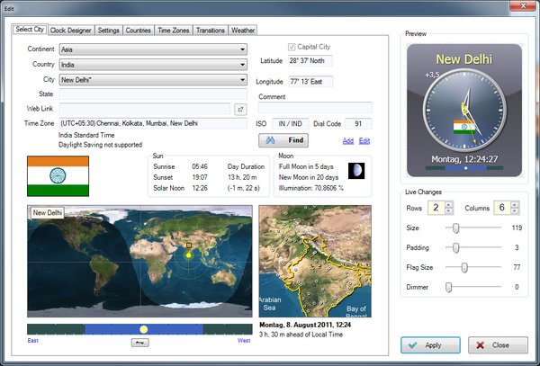 Fully customizable, huge city database with every Time Zone and every Country in the world, search function included